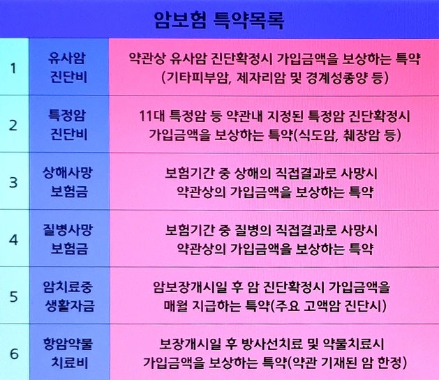첫째, 보장받을 수 있는 치료로는 암을 제거하는 수술, 암에 대한 화학요법, 방사선치료 등이 있다. 또한, 연명의료결정법에 따른 말기암 치료도 모두 보장받을 수 있습니다. 제외되는 치료에는 면역력을 강화하는 치료가 포함됩니다. 치료가 그 예가 될 수 있습니다. 면역력 강화는 주로 암 치료를 목적으로 하지만, 공식적으로 안전성과 효과가 입증되지 않은 식이요법이나 명상요법은 보장되지 않습니다. 암 치료 중 발생하는 합병증 치료 및 후유증은 치료에 해당하지 않으나, 예외적으로 항암 과정 중 필요한 면역력을 위한 치료 또는 후유증이나 합병증의 해소를 위한 치료인 경우에는 보장 가능합니다. . 이처럼 암 보장에는 다양한 종류가 있습니다. 내용은 포괄적이며, 보험사 및 상품에 따라 다를 수 있습니다. 그래서 비교사이트 이용을 추천드리고 싶습니다. 삼성화재 암보험 등 암상품의 약관을 쉽게 쉽게 이해할 수 있으며, 애로사항이나 궁금한 사항에 대한 상담도 가능합니다. 진행되고 있으니 회원가입 전 확인하실 사항을 알아보시면 도움이 될 것 같습니다. 70세암보험견적을 확인하고 상품구성에 대한 도움도 받으실 수 있으니 비교사이트를 이용해보세요.