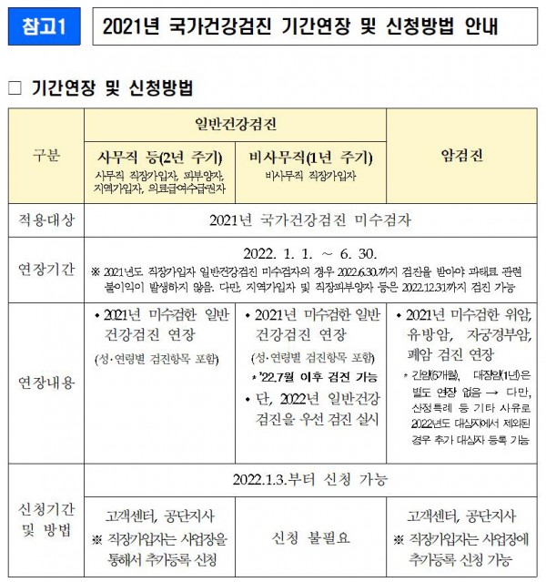 1) 마지막으로 간질환, 폐결핵, 흉부질환 검사, 구강검진 등을 받아 모든 시술이 완료됩니다. 그 외에 암검진도 있습니다. 2) 40세 이상의 남성과 여성은 위암 검진을 위해 2년마다 위내시경이나 위장관혈관조영술을 받아야 한다. 하나를 선택하여 수신할 수 있습니다. 3) 50세 이상 남녀는 대장암 예방을 위해 매년 감별잠혈검사를 받아야 하며, 40세 이상 고위험군에 속하는 남녀는 간암 예방을 위해 감별잠혈검사를 받아야 한다. 시험은 일년에 2번, 상·하반기에 실시됩니다. 4) 40세 이상의 여성은 2년마다 자궁경부암 검진을 받아야 하며, 20세 이상인 경우에도 2년마다 자궁경부암 검진을 받을 수 있습니다. 5) 검사 결과 고혈압이 있는 경우, 당뇨병, 폐결핵 진단을 받은 경우 1회에 한해 요금감면을 받을 수 있습니다. 다섯번째 *올바른 건강관리 방법