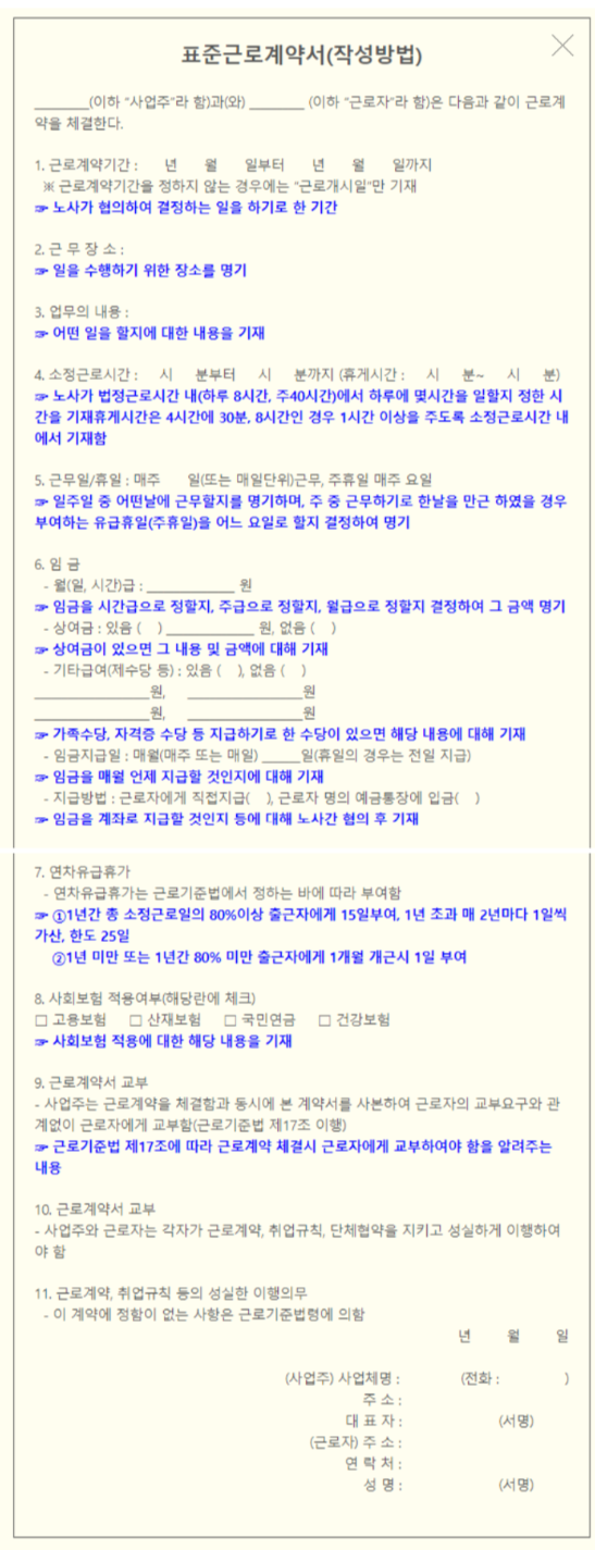표준근로계약서는 어떻게 작성하나요?