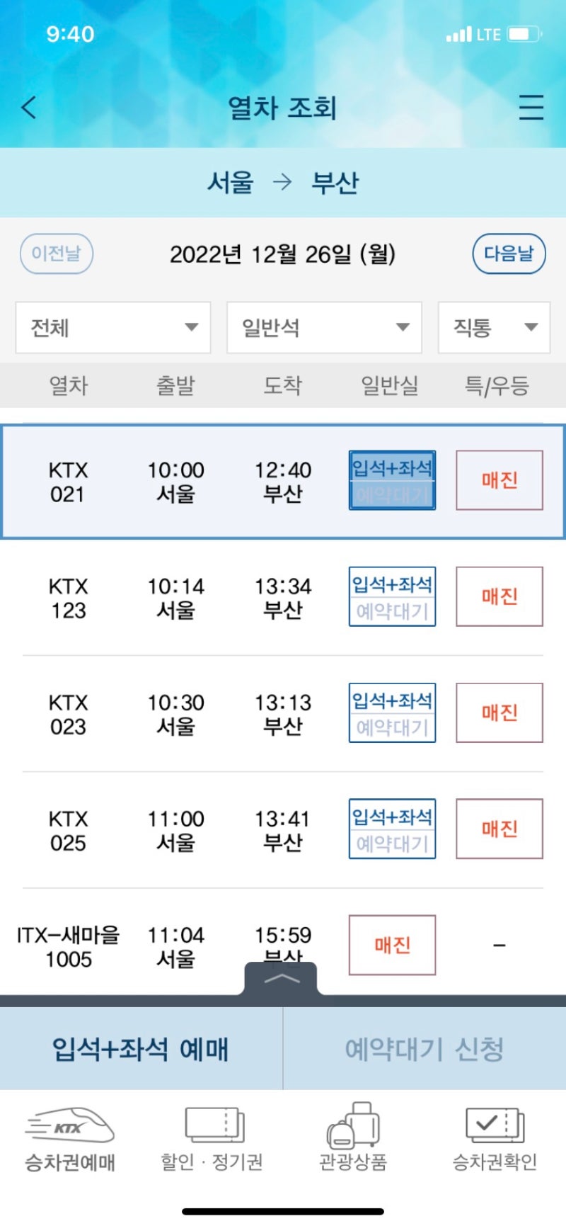 요즘 KTX에는 발판이 있어서 좋더라구요. 참고로 열차 앞쪽에서 더 멀리 떨어진 차량에 탑승하시면 좀 더 조용하게 휴식을 취하실 수 있습니다! 그늘 방향 아까 충전기 방향에 대해 설명드렸는데 빛이 들어오는 걸 싫어하시는 분들이 많더라구요! 특히 다크스팟이 고민되는 여성분들~→ KTX 상행선 : 오전엔 왼쪽 그늘 → KTX 하행선 : 오전엔 오른쪽 그늘 ※ 오후에는 반대로 생각해보세요. 음, 그늘이 아니더라도 블라인드가 있어서 햇빛을 피할 수 있어요. 하지만 빛의 강도와 감도는 다르겠죠? 그리고 햇빛을 피하면서 창밖을 바라보고 싶은 분들은 KTX 예약 꿀팁을 미리 알아두시면 좌석 선택에 큰 도움이 되실 거에요! 참고로 위 사진을 보시면 KTX 편의시설을 갖춘 열차들이 한눈에 보이시죠! 예를 들어, 보관소 근처에 차량을 원하시면 보관소 아래에 삼각형으로 표시된 1, 2, 3차가 있으니 해당 차량을 선택하시면 됩니다! 서서 + 앉아서? 그리고 입석 구매 꿀팁 : 출장이 잦은 직업은 아니지만 가끔 여행을 가거나 KTX를 탈 때 코레일 톡이나 홈페이지를 통해 좌석을 예약하는데 자리가 없을 때가 있어요. 좌석이 부족해요! 그럼 입석+좌석이라는 곳도 있고, 자유석이라는 곳도 있는데, 역에서는 무엇을 판매하나요? 그렇게 생각해요! 한 번에 정리해드릴게요! 스탠딩, 자유석 : 지정석 없이 구매한 티켓 스탠딩 : 좌석 없음 자유석 : 월요일~금요일 평일 출퇴근 시간에는 좌석 지정 불가. 고객센터에 직접 확인하신 후 입석 + 좌석은 대기석이므로 입석으로 간주하시면 됩니다! 하지만 어떤 구간에는 앉고 어떤 구간에는 서야 하는 시스템이다. 그런데 여기서 중요한 점은 15% 할인이 가능함에도 불구하고 앉을 수 있는 구간이 그리 길지 않다는 점! 물론 케바케! 이렇게 간식은 잊어버리고 앉아서 먹어야 하는데 좌석은 없지만 간이석이 있는 공간이 있어서 선착순으로 간이석에 앉을 수 있다. 스탠딩 + 좌석. 어떤 구역에는 앉고, 어떤 구역에는 서 있는 긴 구역의 입석 전용 좌석이라고 생각하시면 됩니다. 하지만, 스탠딩석을 탈 수밖에 없는 분들을 위한 팁도 알려드릴게요! 1. 탑승장에 15분 일찍 도착할 수 있으니 빨리 가세요. 2. 이동식 좌석을 빠르게 예약하세요3. 간이좌석 예약이 불가능한 경우, 빈 좌석이 있는지 확인하세요. 4. 일부 구간이 얼마나 비어 있는지 승무원에게 확인하세요5. 잠시 앉아있자! KTX 예약 취소 수수료 하지만 KTX의 경우 좌석이 빨리 매진돼 취소되는 경우가 많다. 취소수수료 규정이 까다롭지 않으니까요! → 월요일~목요일 탑승 : 출발 3시간 전까지 취소 가능 → 금요일, 주말, 공휴일 : 구매일을 포함하여 7일 이내 취소 가능 처음 탑승하시는 분들이라면 KTX 예약팁부터 용어까지 모두 참고해주세요! KTX가 정말 좋아졌습니다. 중간에 간식을 살 수 있는 자판기가 있습니다. 적재공간은 좌석간 간격이 꽤 넓어서 개인적으로 비행기보다 낫다고 생각해요! 하지만 그 정도까지 가면 가격이 만만치 않습니다! 마지막으로 KTX 여행을 준비하시는 분들께 도움이 되었으면 좋겠으니 짧은 영상도 한 번 봐주세요. ^^ 광고 후 계속됩니다. 다음 주제 작성자 취소 KTX 티켓팅 팁 재생 18 좋아요 0 좋아요 공유 0:00:00 재생 음소거 00:00 00:32 실시간 설정 전체 화면 해상도 자동 480p 자막 비활성화 재생 속도 1.0x(기본) 해상도 자동(480p) 1080p HD 720p HD 480p 270p 144p 자막 설정 비활성화 옵션 글꼴 크기 배경색 재생 속도 0.5x 1.0x(기본값) 1.5x 2.0x 알 수 없는 오류가 발생했습니다. 도움말이 음소거되었습니다. 도움말 라이센스 이 영상은 고화질로 재생할 수 있습니다. 설정에서 해상도를 변경해보세요. 자세히보기 0:00:00 접기/확장KTX 예약팁 할인, 충전기석, 입석 KTX 예약팁 #KTX 예약팁 #KTX 예약 #KTX할인 #KTX충전석 #KTX입석 #KTX #KTX좌석 모두 즐거운 시간 되시기 바랍니다 여행요. 이것! 50m NAVER Corp.자세히 보기 /OpenStreetMap map datax NAVER Corp. /OpenStreetMap Map Controller Legend 부동산 동시군면 산고리읍 구시가지 용산역(고속철도) 55 한강대로 23- 서울시 용산구 길 여행에 유용한 정보만! 여행 인플루언서 놀지의 팬이 되어 가장 많은 정보를 받아보실 수 있어요! 네이버 검색창 + @놀지
